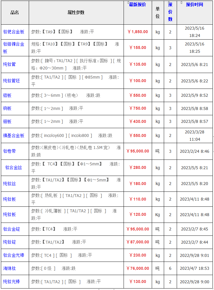 二、國(guó)內(nèi)市場(chǎng)海綿鈦價(jià)格行情