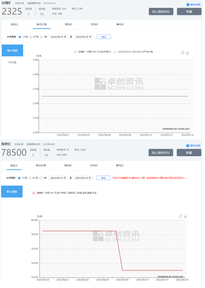 四、鈦精礦、海綿鈦近一月價(jià)格變化