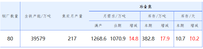 一、獨(dú)立焦化企業(yè)煤焦庫存匯總(5月4日-5月11日)
